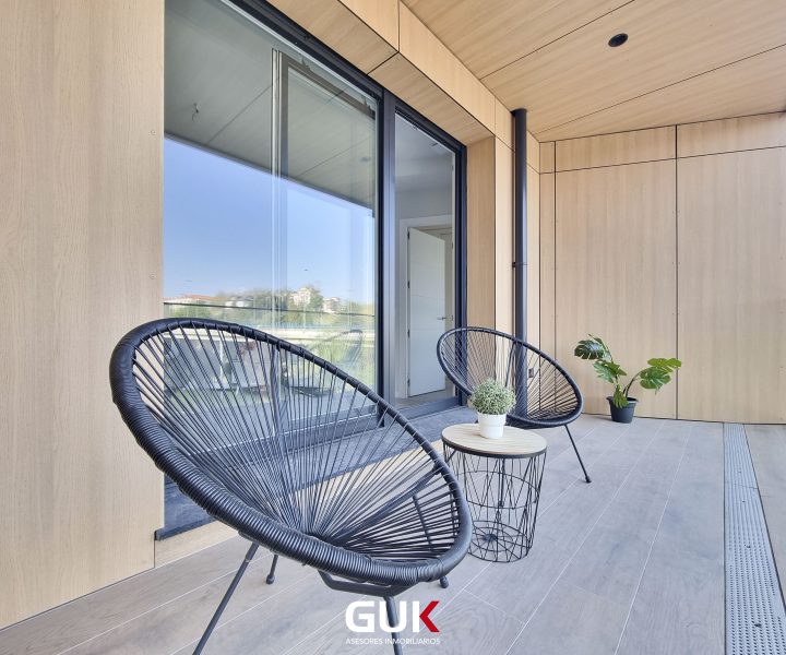 dos habitaciones con armarios empotrados, dos baños completos, cocina totalmente equipada con salón que se abre a una terraza de 12 m², perfecta para disfrutar del exterior con privacidad.